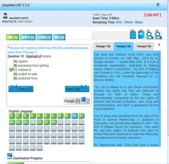 It is designed to provide prospective examination/interview candidates with the opportunity to practice and improve on their readiness for any examination/test/interview directly from their computer system or any other mobile device anywhere, anytime in preparation for outstanding performance in JOB APTITUDE TESTS, SCHOLARSHIP EXAMINATIONS, PROFESSIONAL CERTIFICATION EXAMINATIONS, JAMB UTME, POST UTME, NABTEB etc.